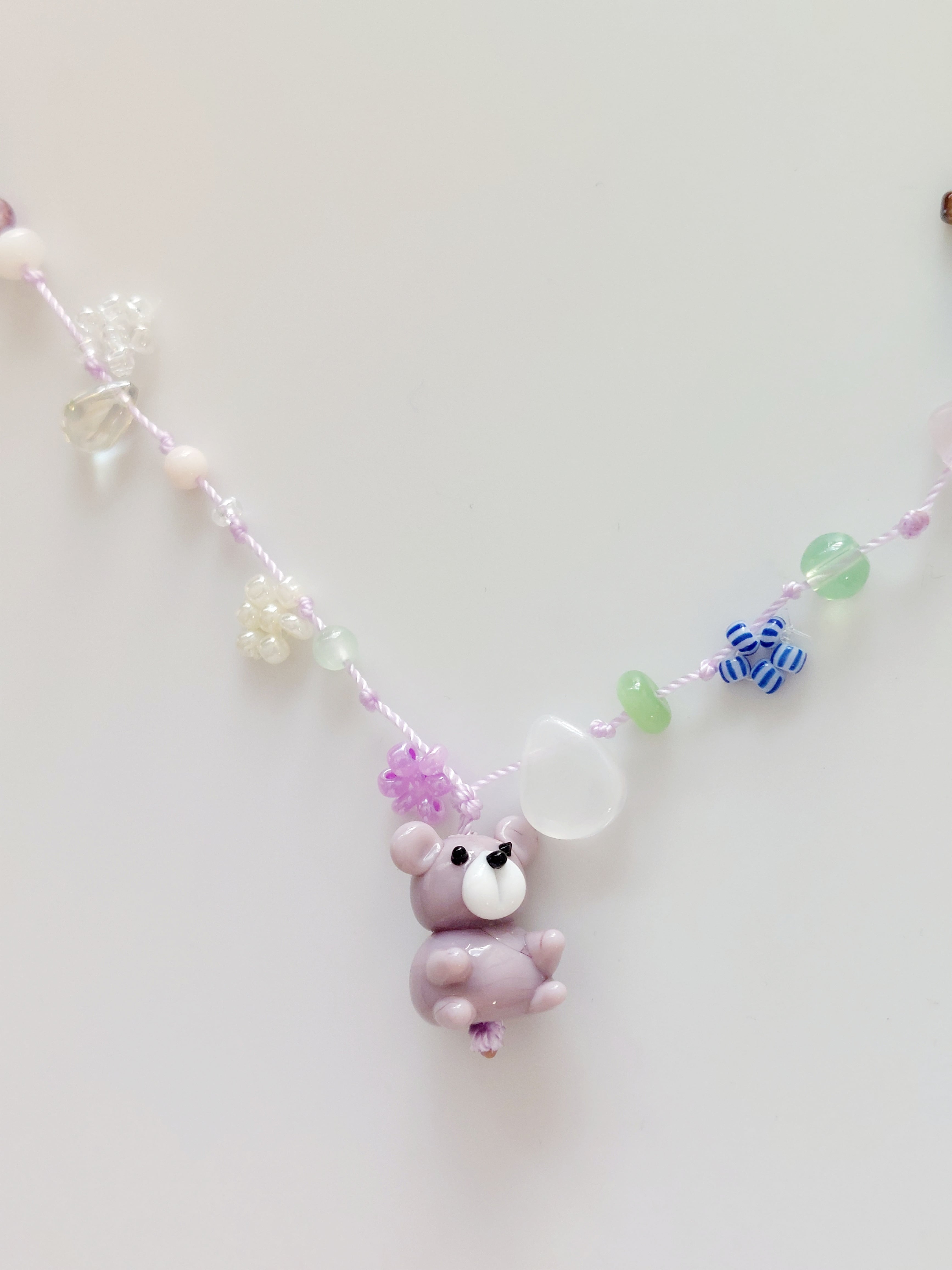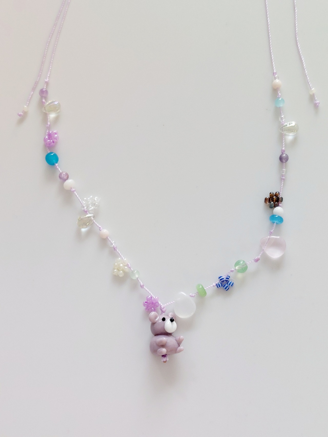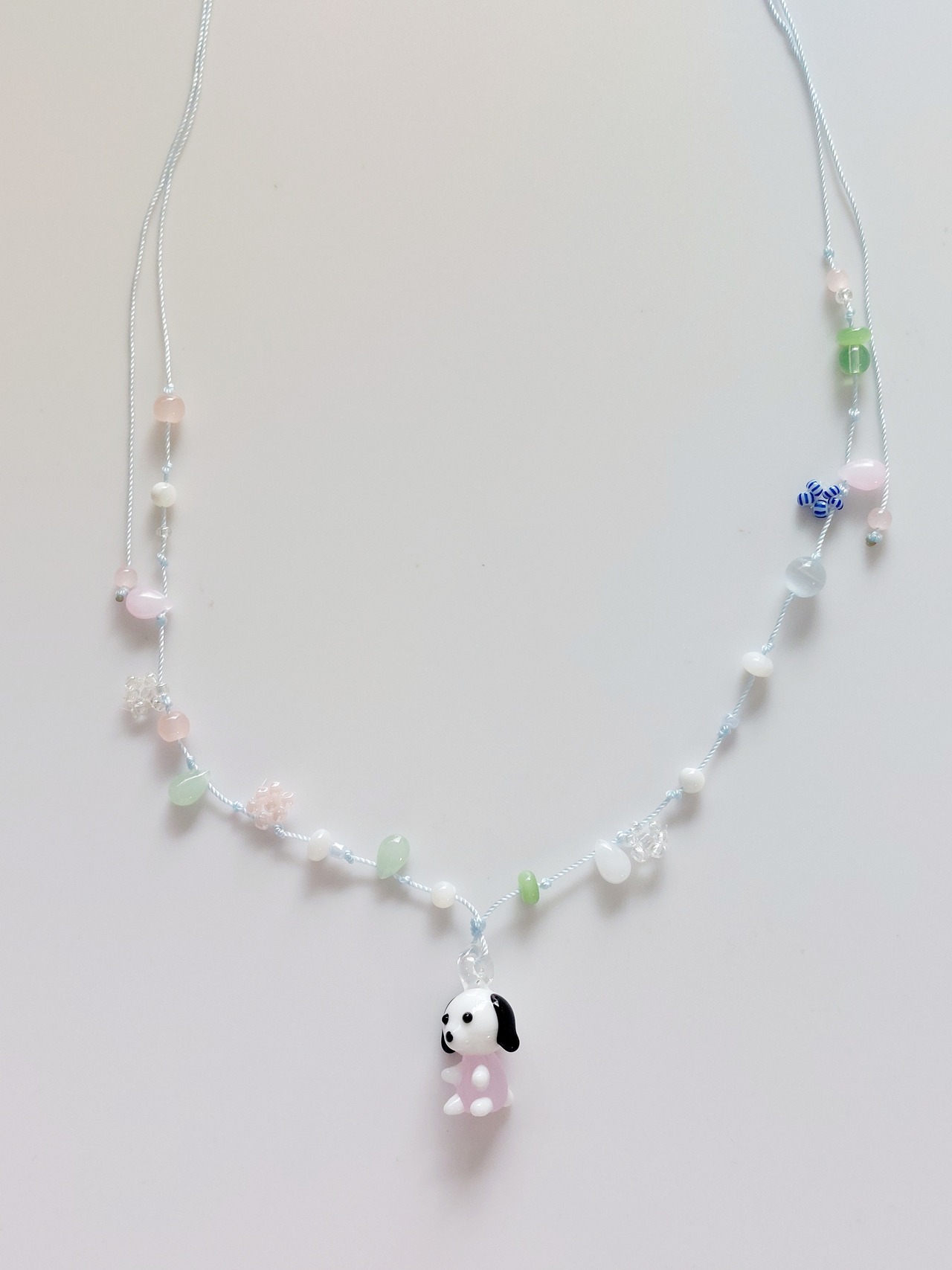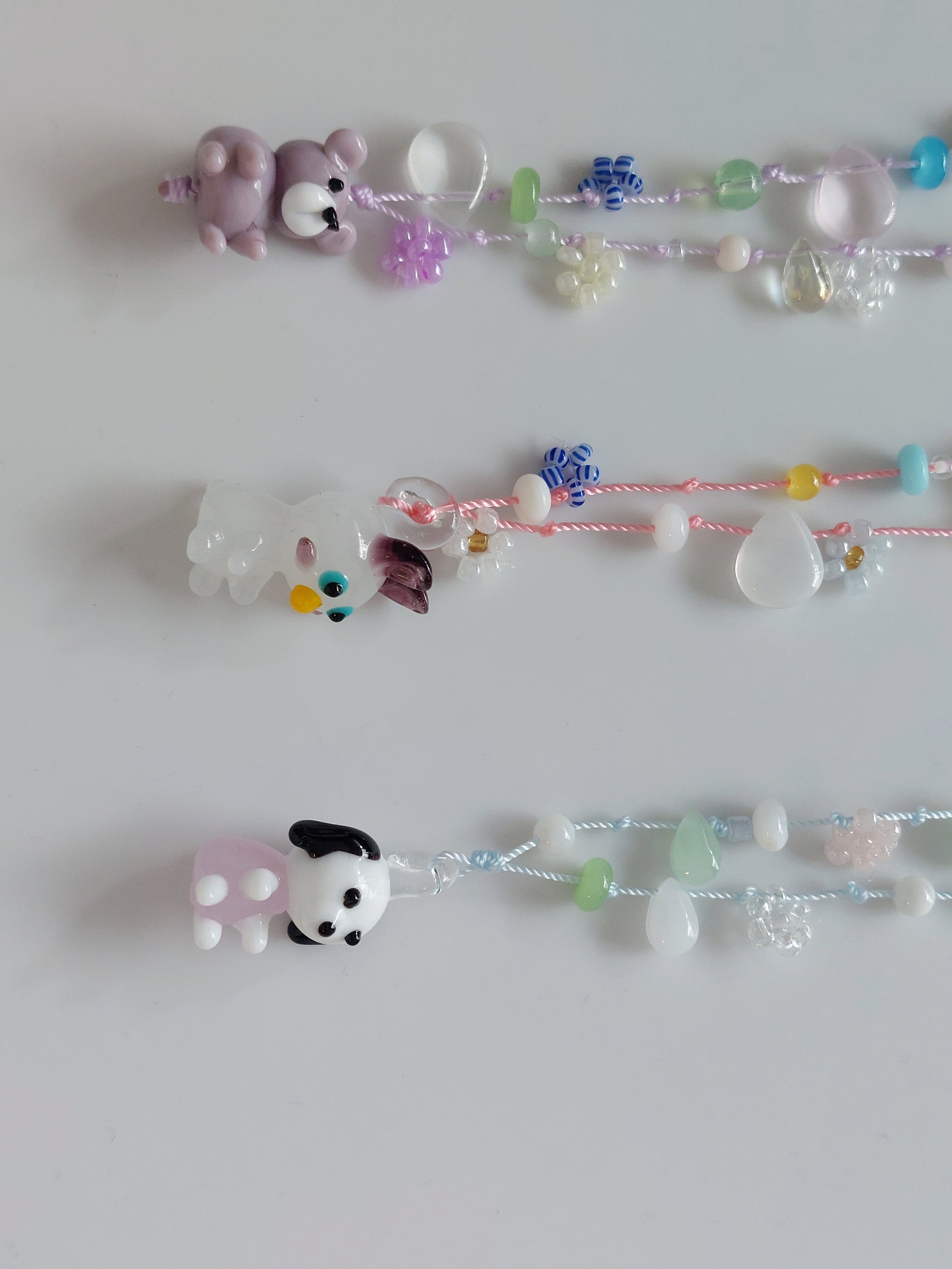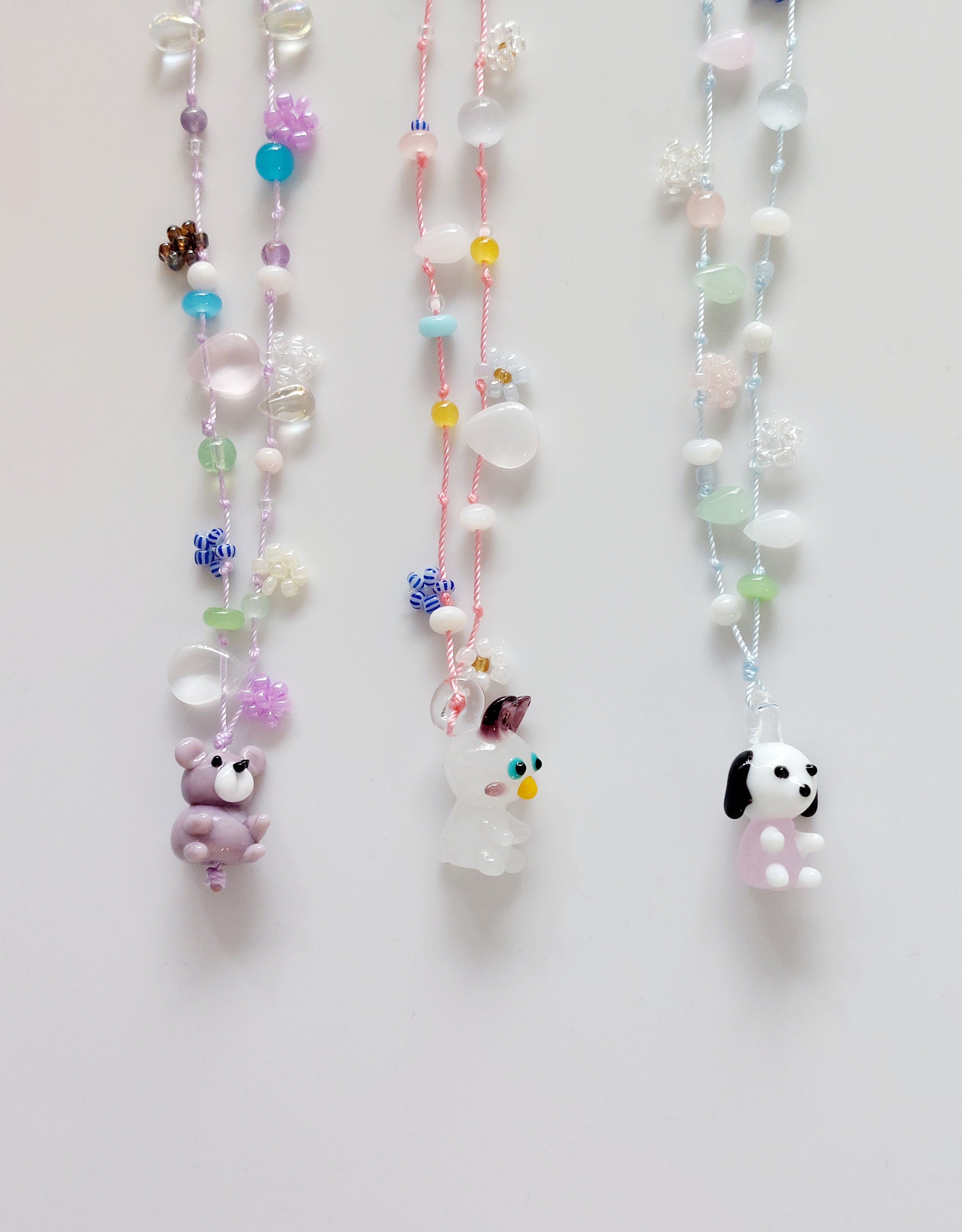 とっても涼やかでかわいい動物さんのビーズネックレスです。