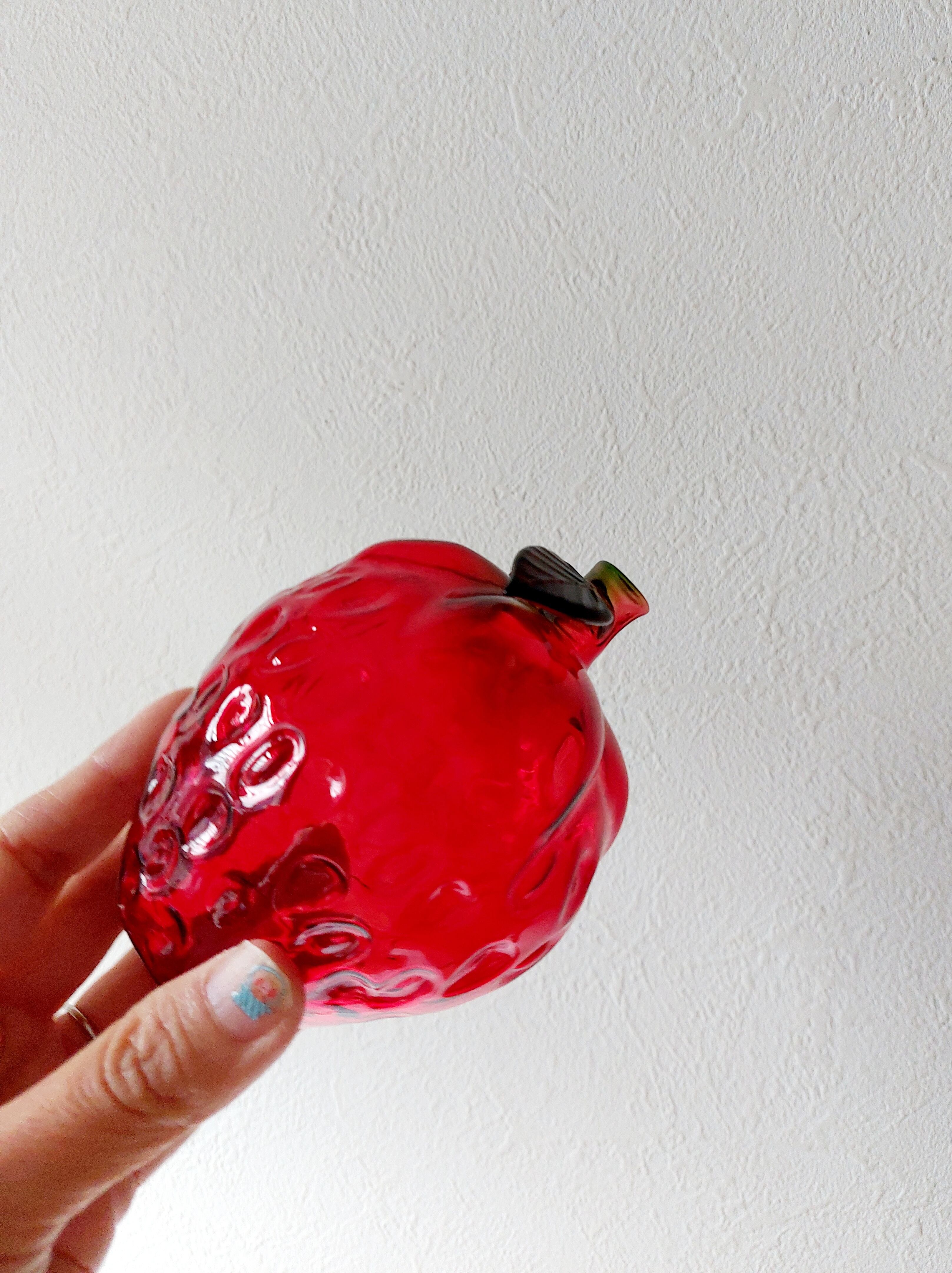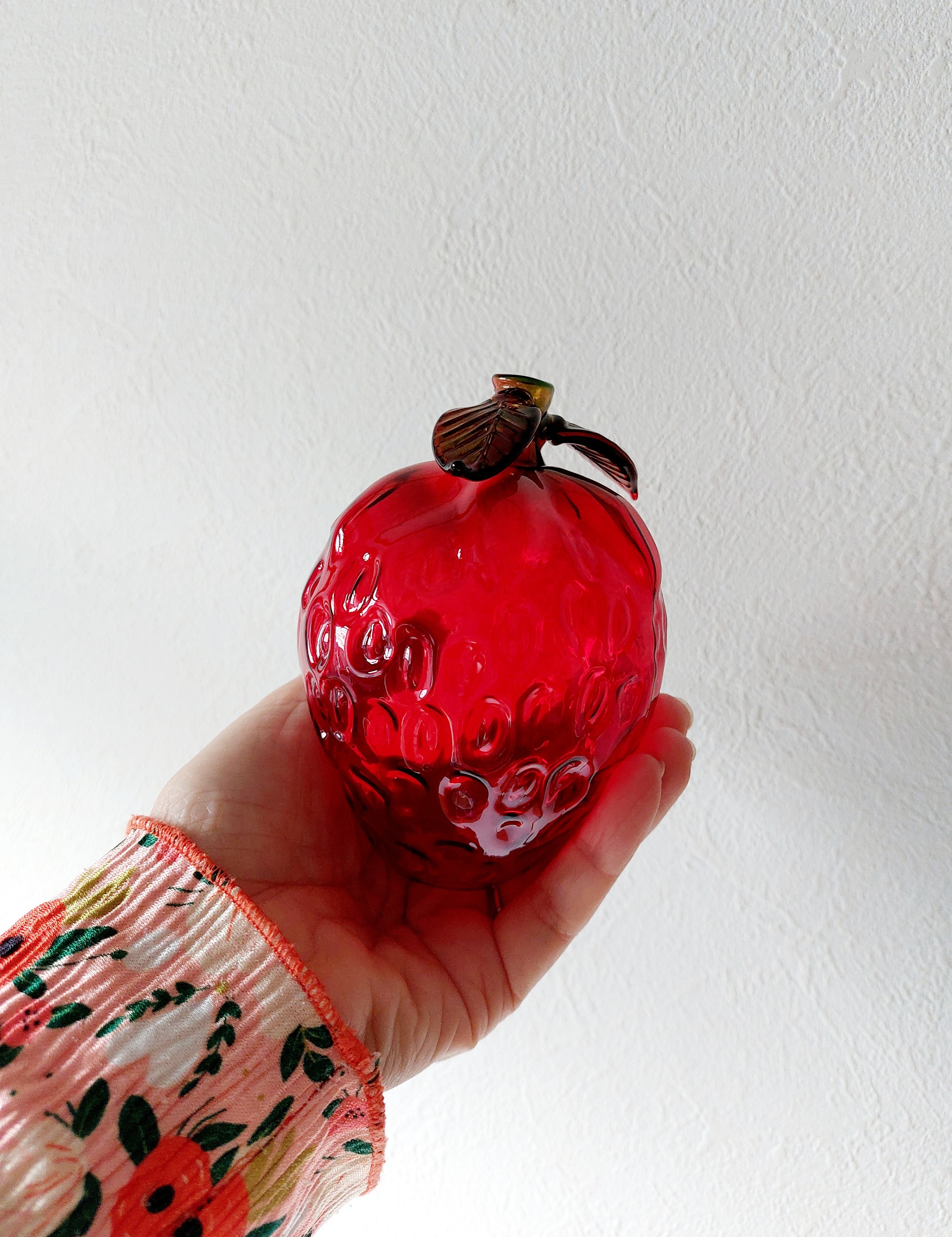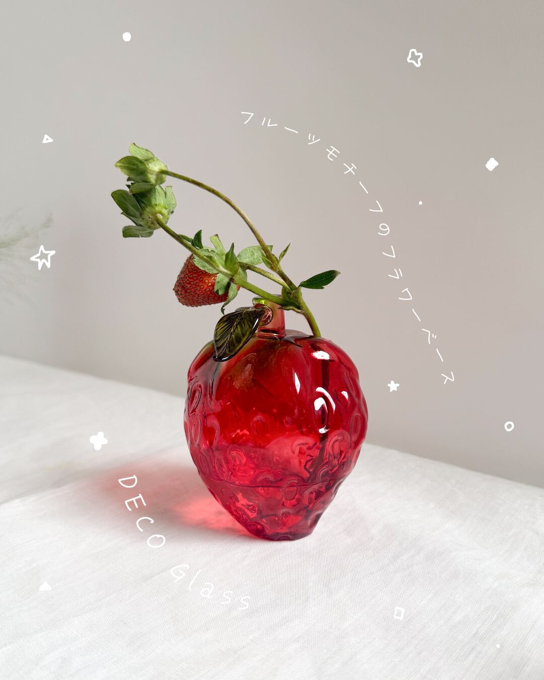 ストロベリーをイメージしたフラワーベースで、一輪挿しとしてはもちろん、オブジェとして飾っておくだけでも絵になります。