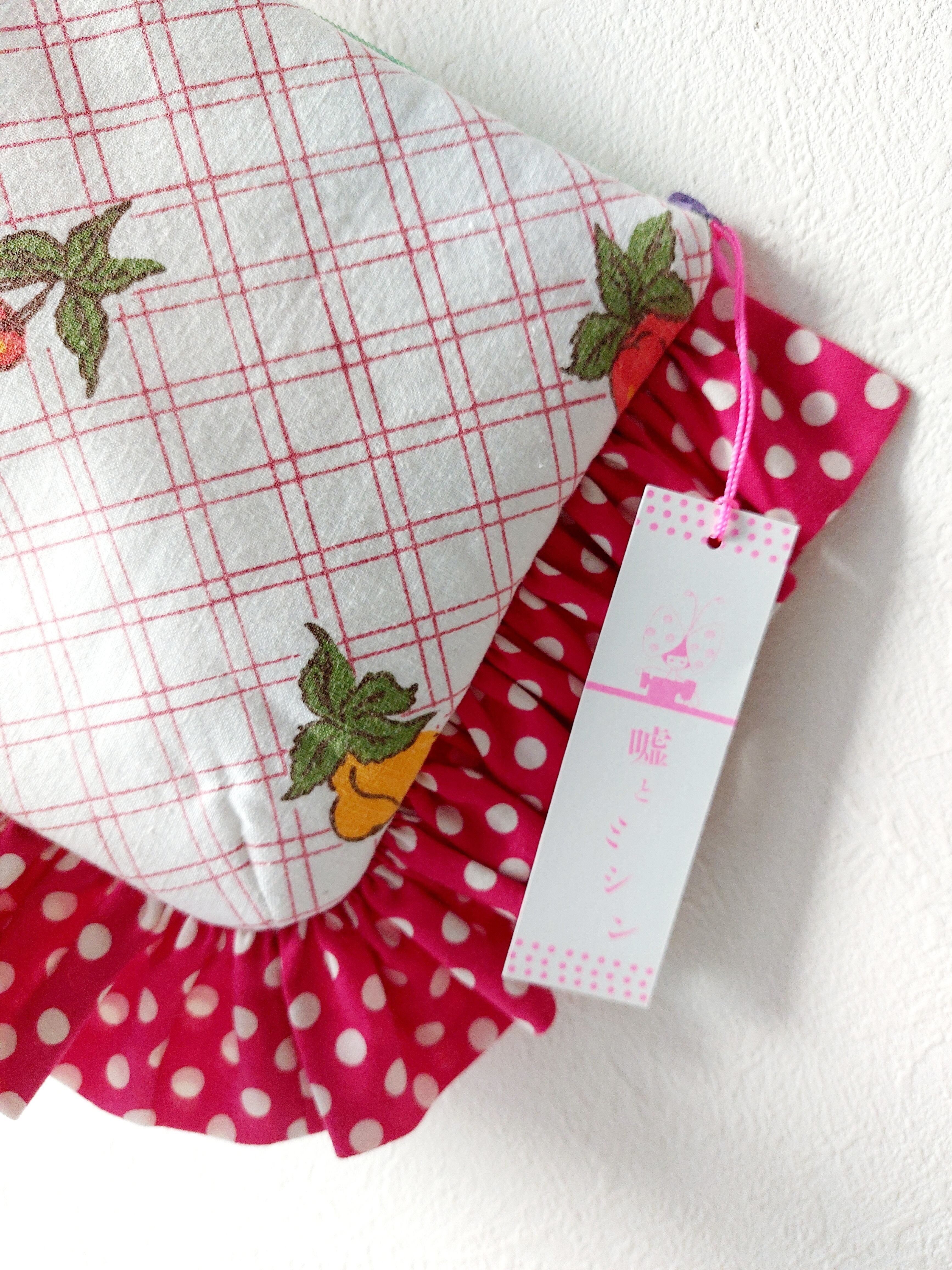 嘘とミシン○ヴィンテージフリルポーチ(フルーツ/チェリーピンクドット)