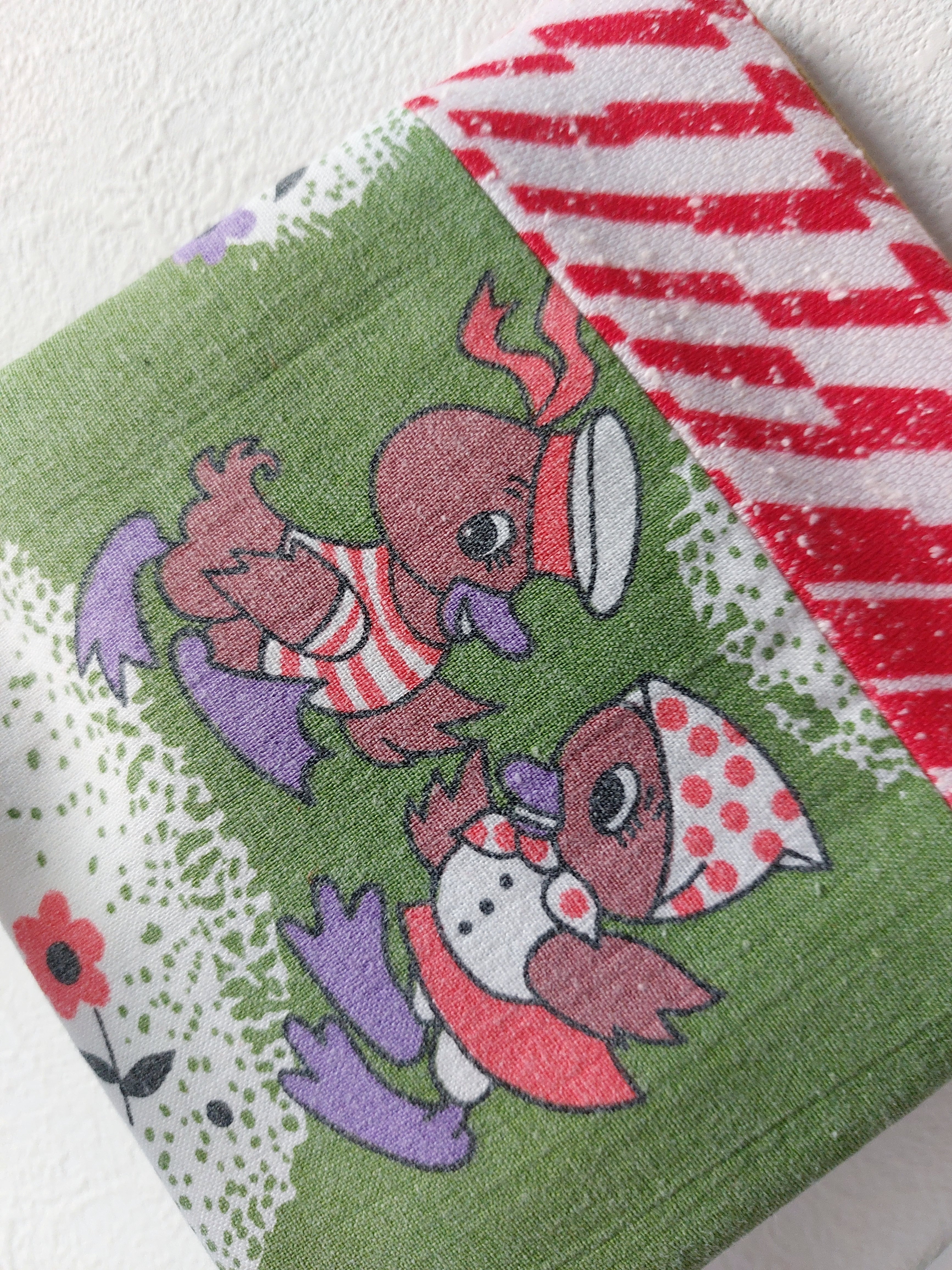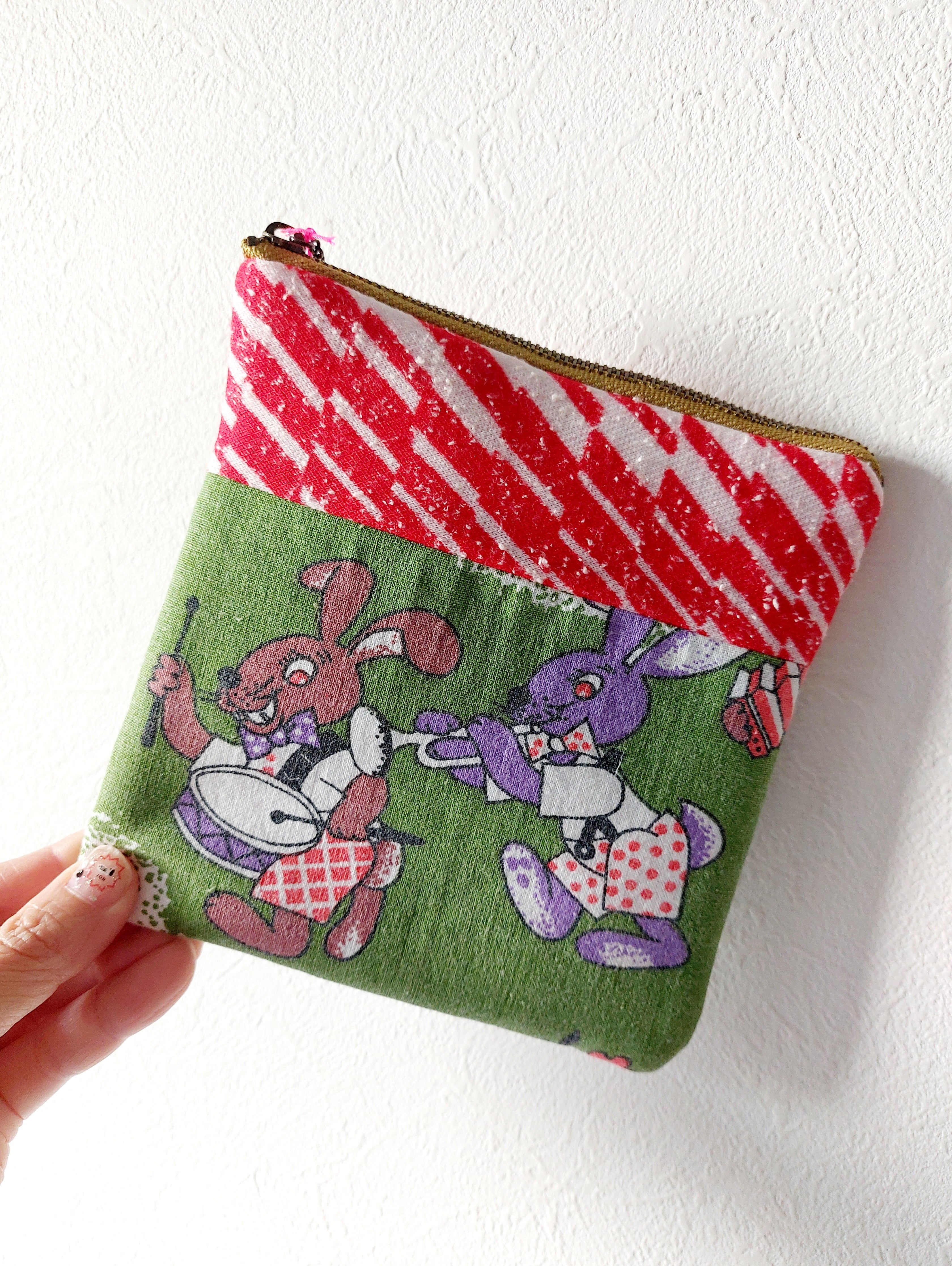 嘘とミシン○ヴィンテージポーチ(あひるとうさぎ+紅白ストライプ)