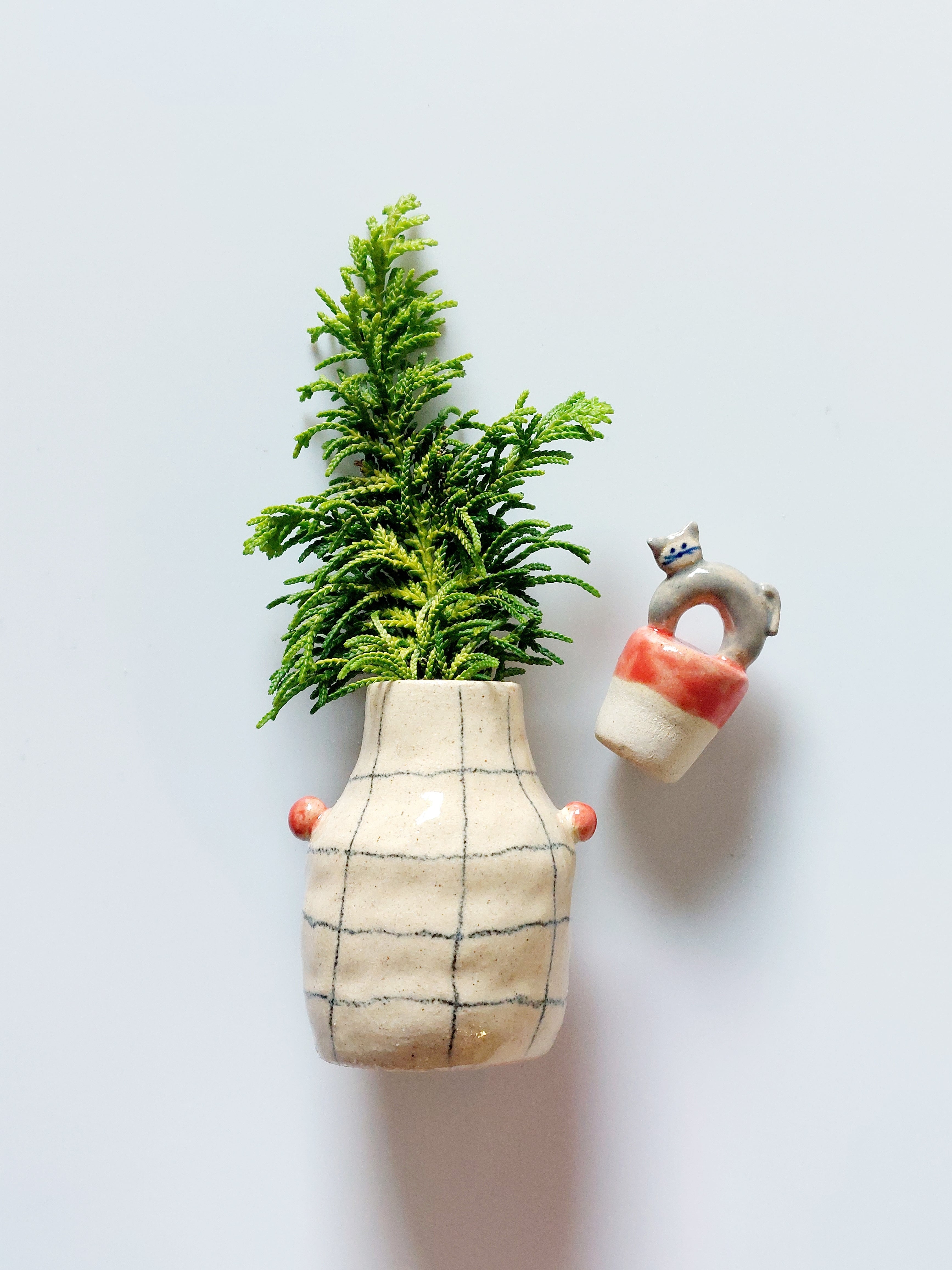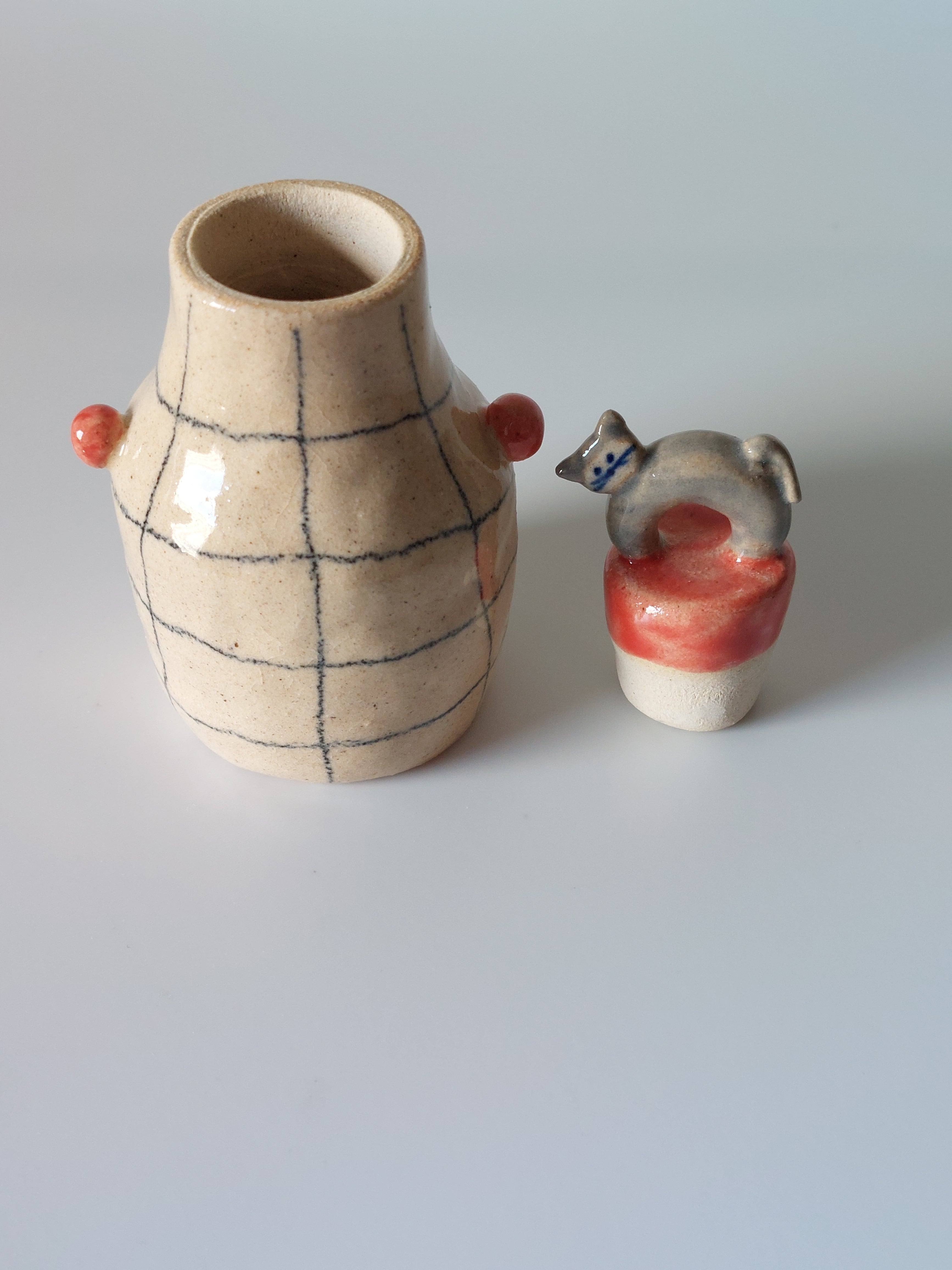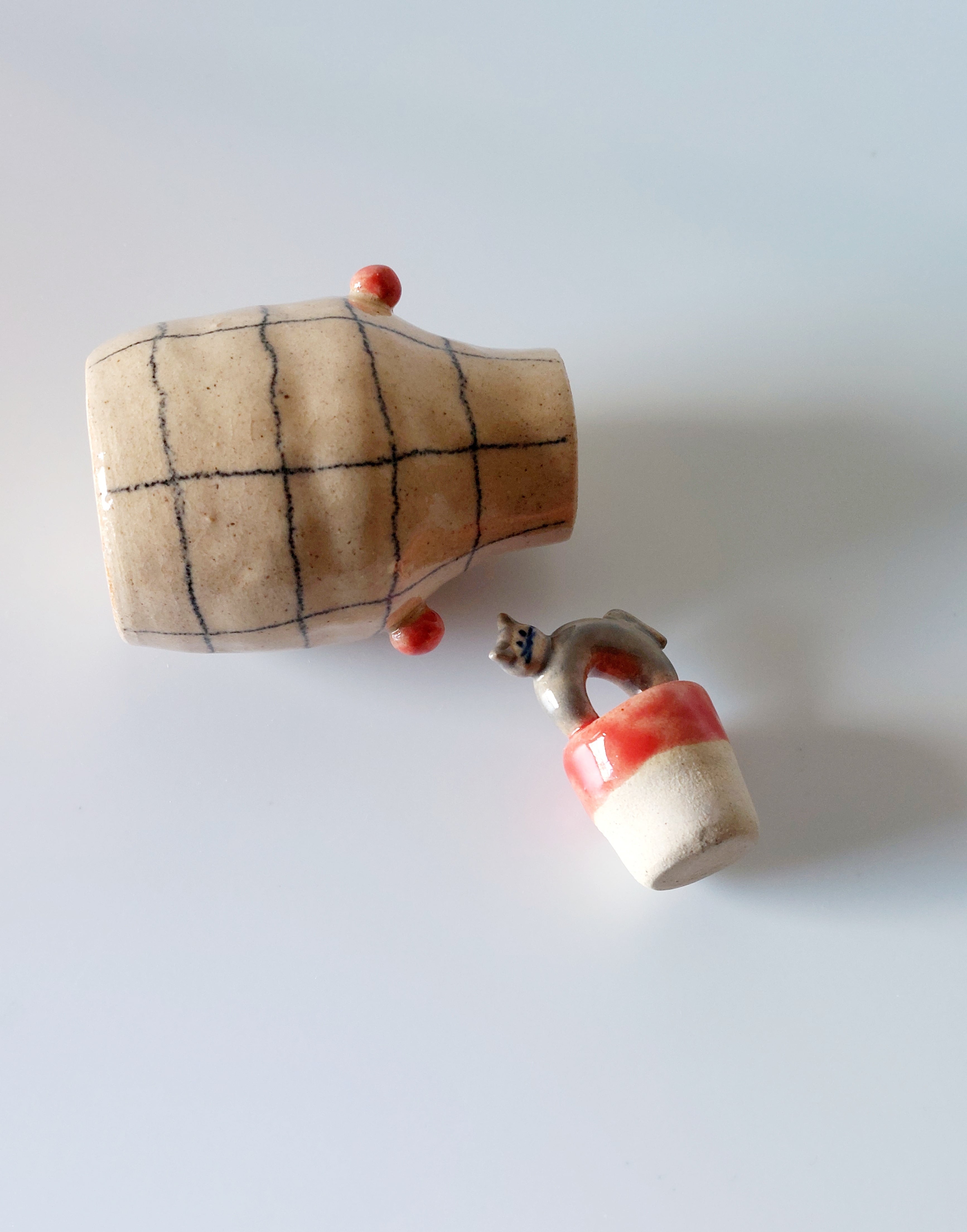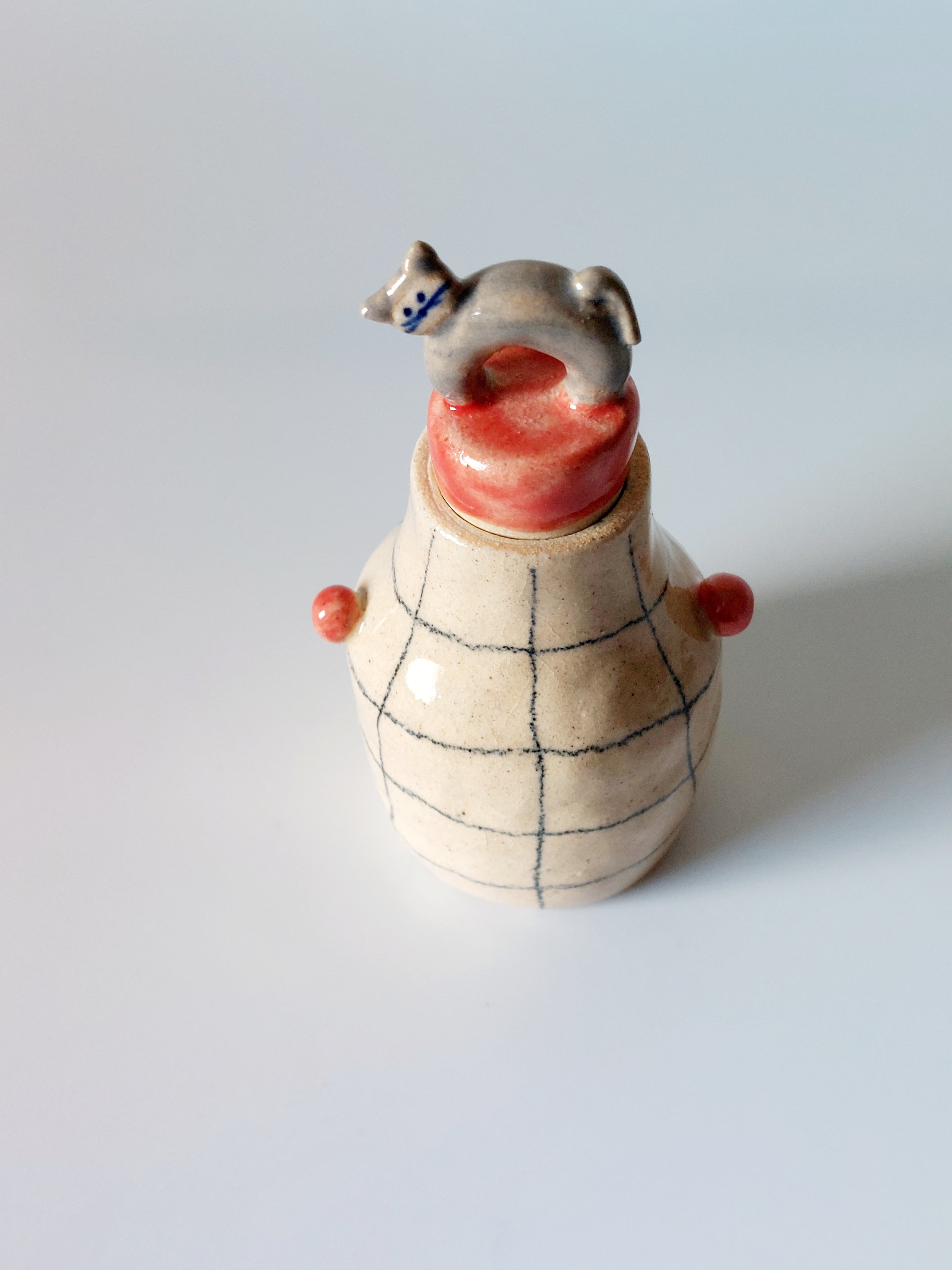 ミチクサヲクウ〇ふた付き花びん ネコ