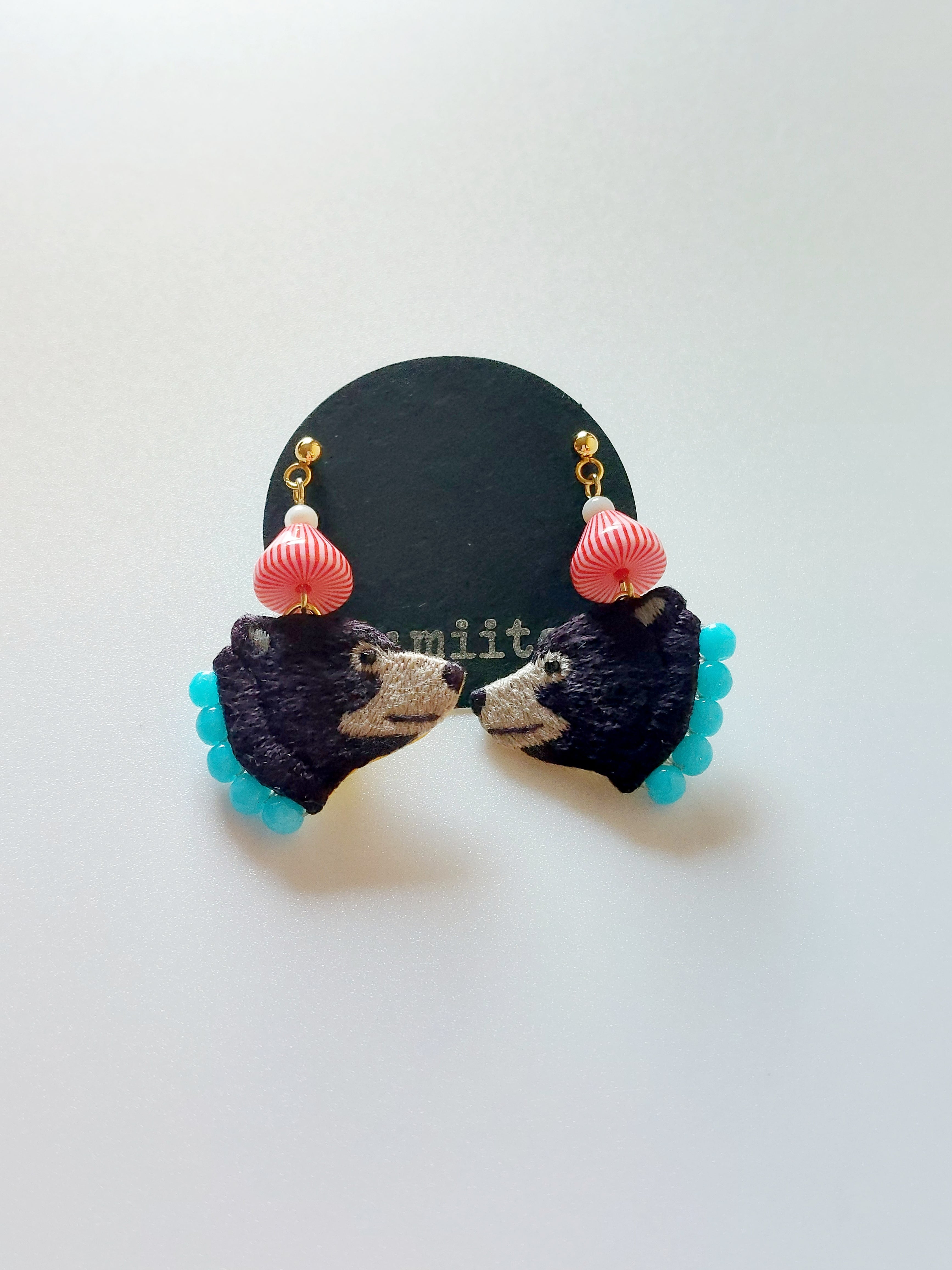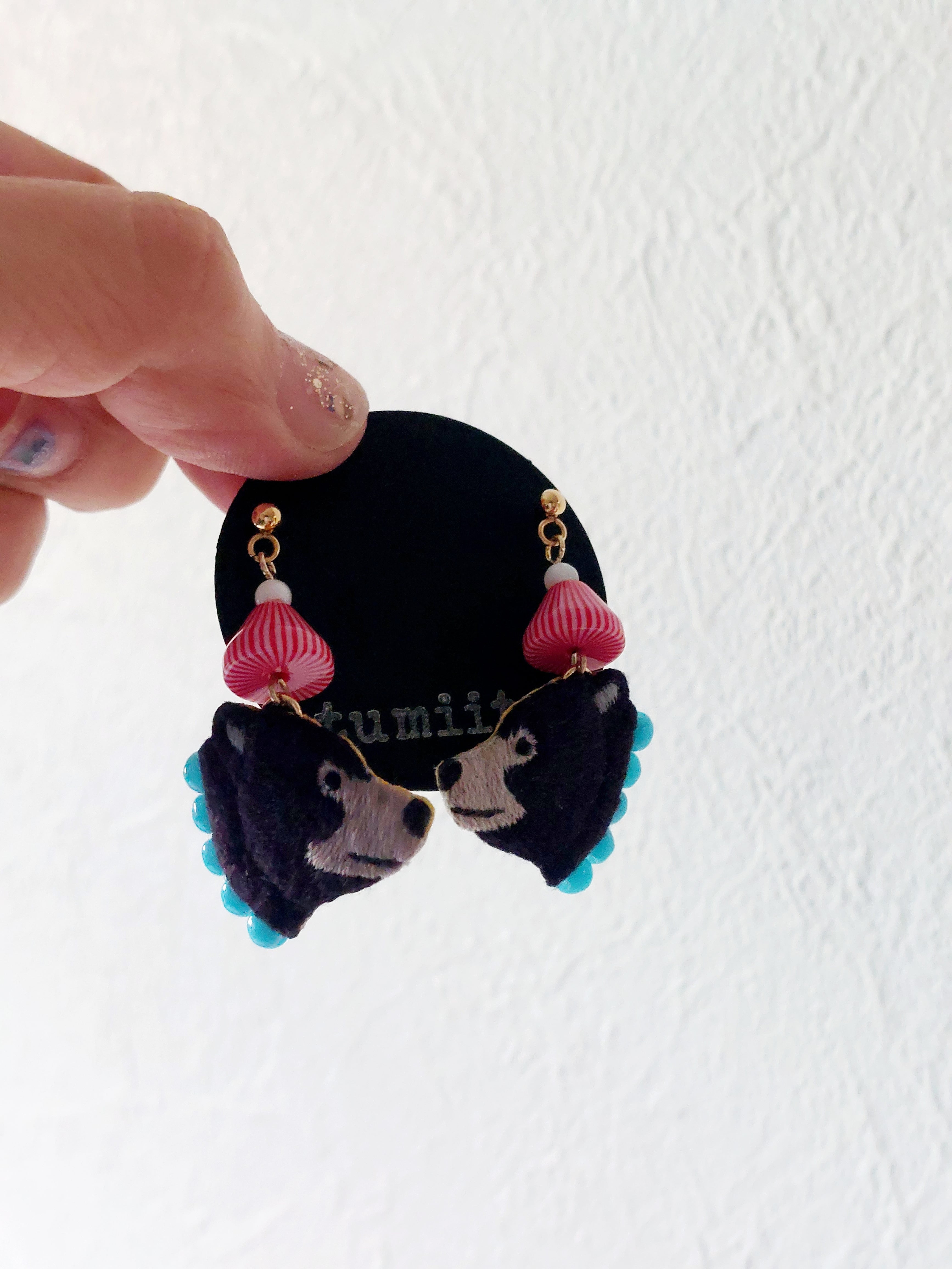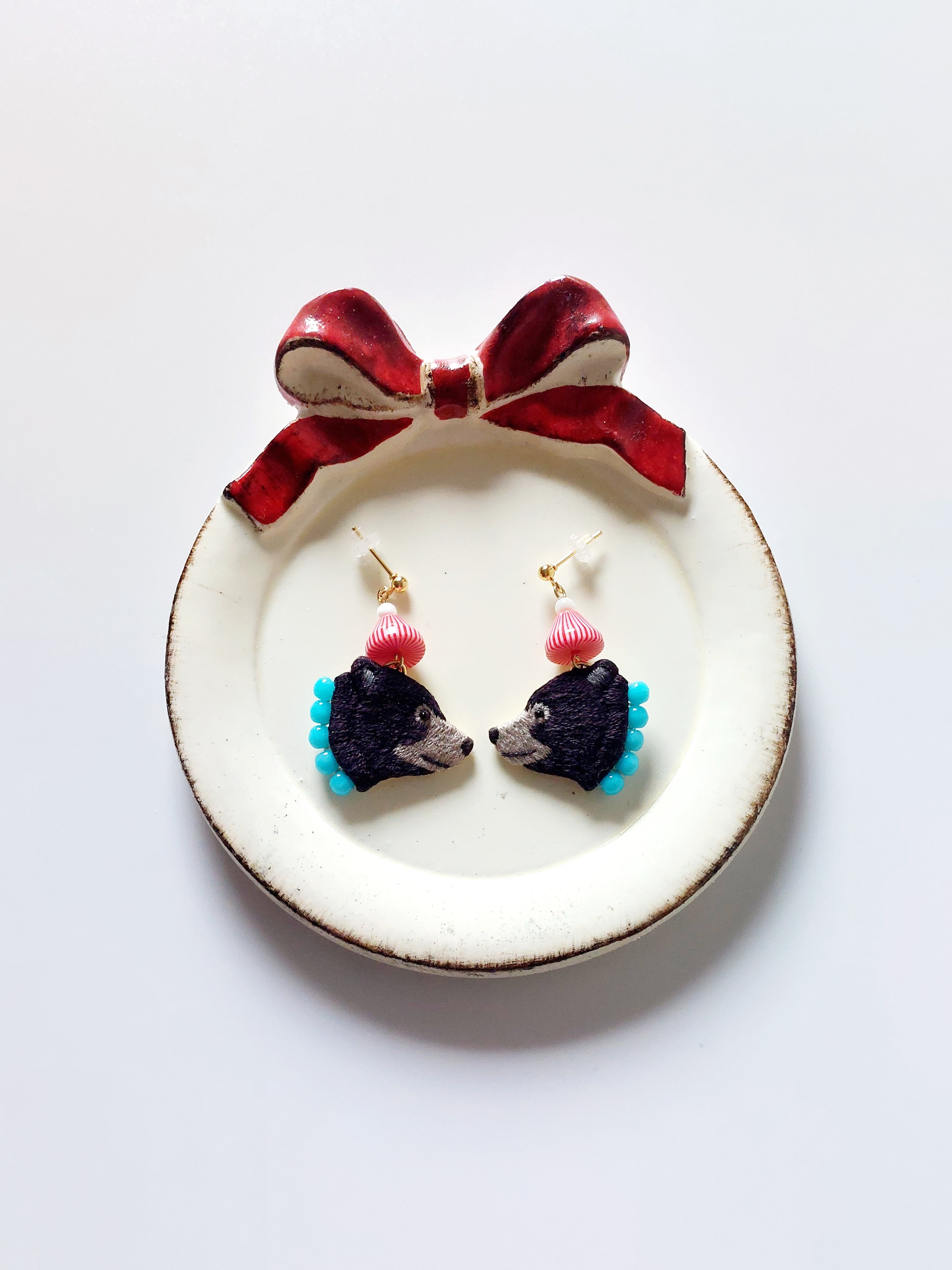 こちらは、くまちゃんのお顔にビーズの帽子が付いた