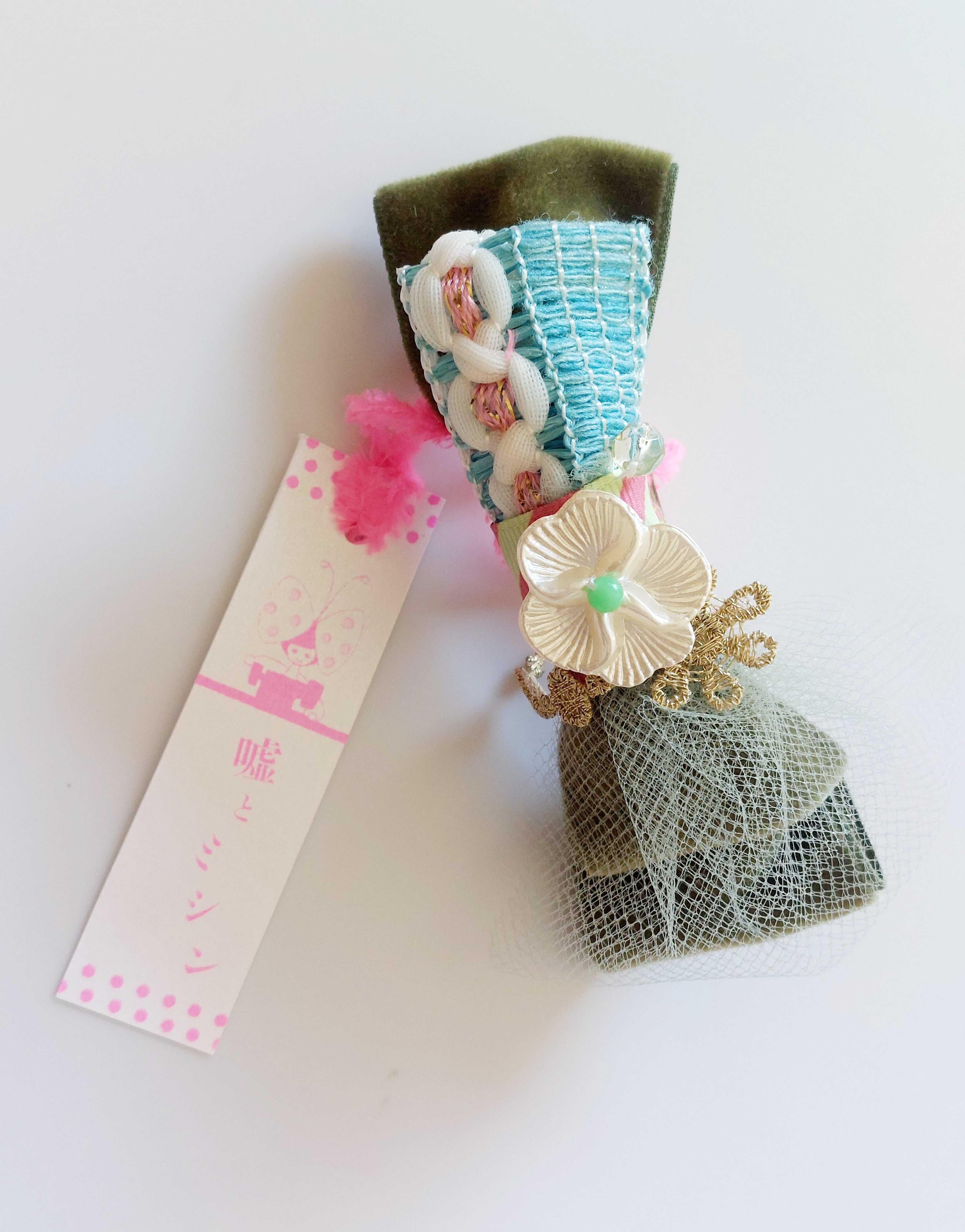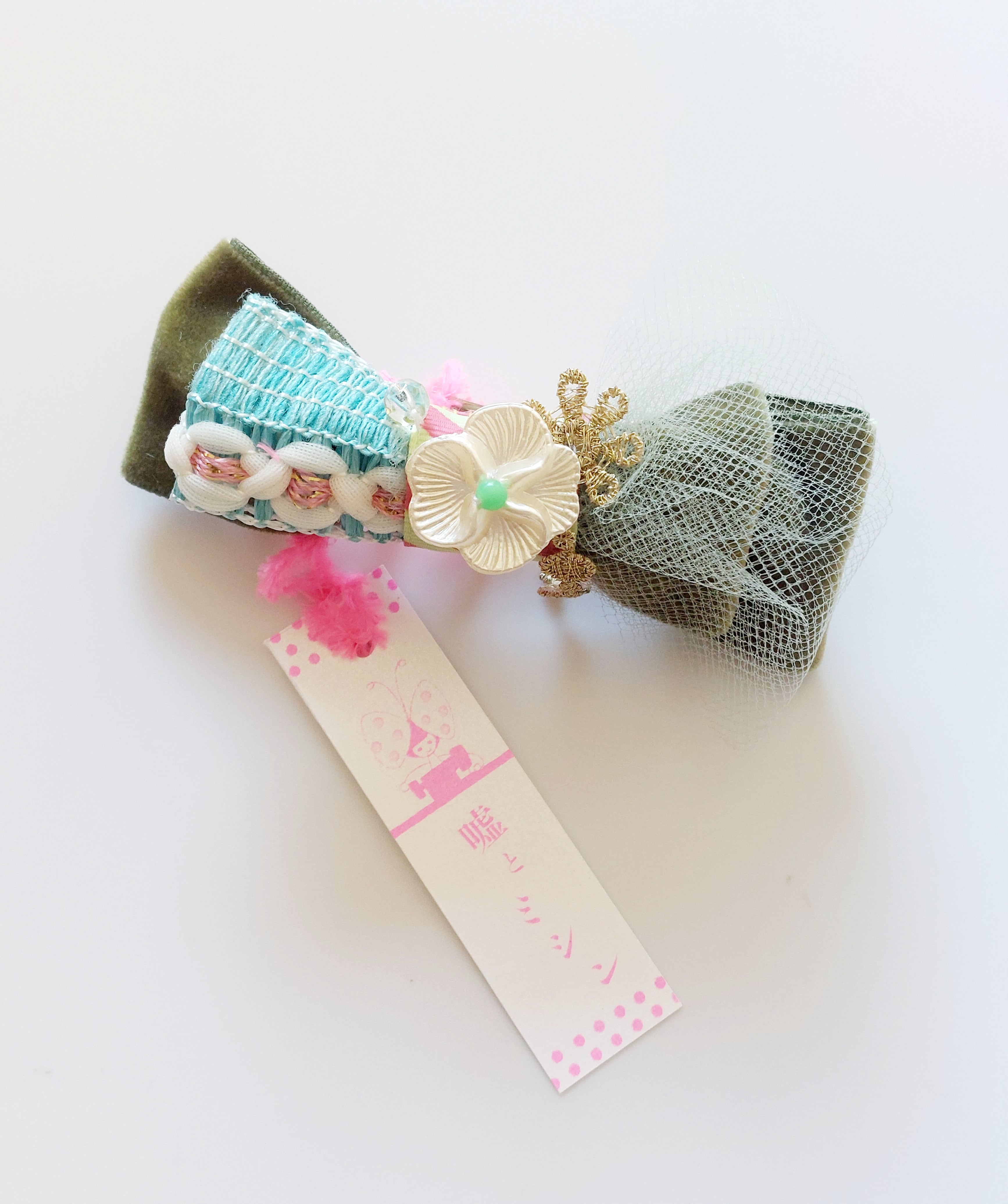 嘘とミシン○りぼんのバレッタ(moss green)