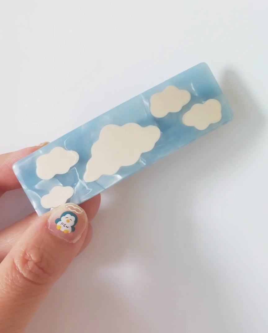 雲がプカプカ浮いていて優しいお色のバレッタです。