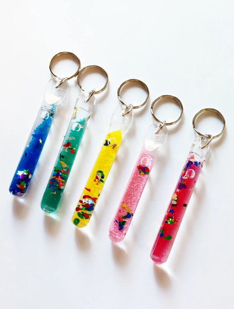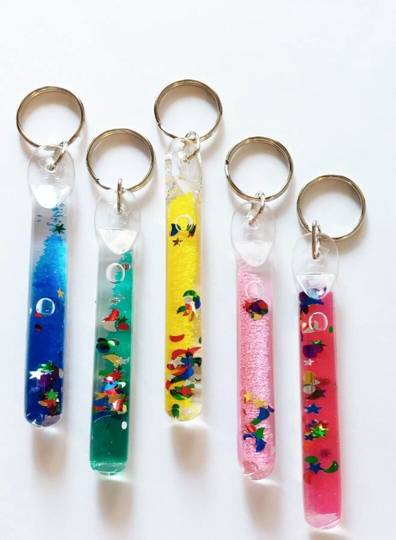 スパンコールがキラキラして、きれいなキーホルダーです。