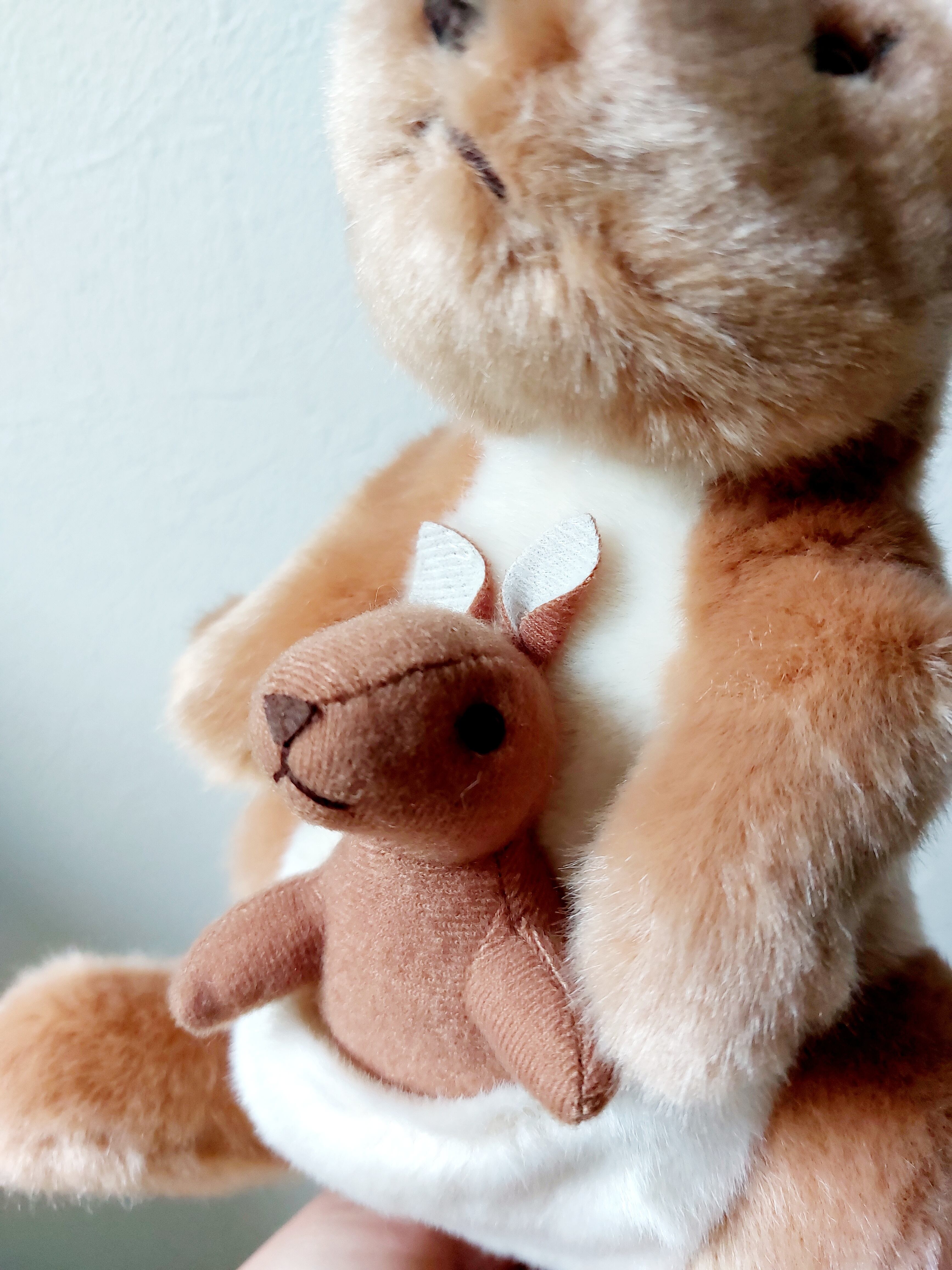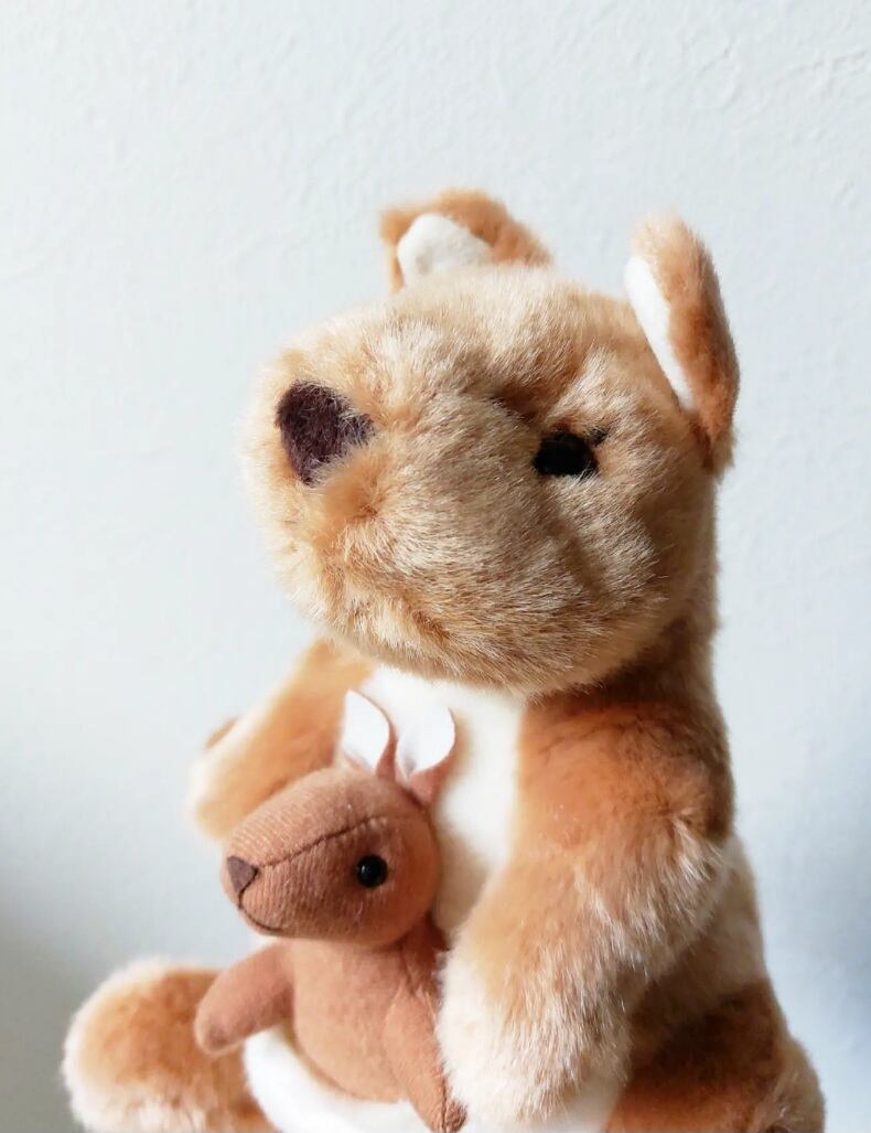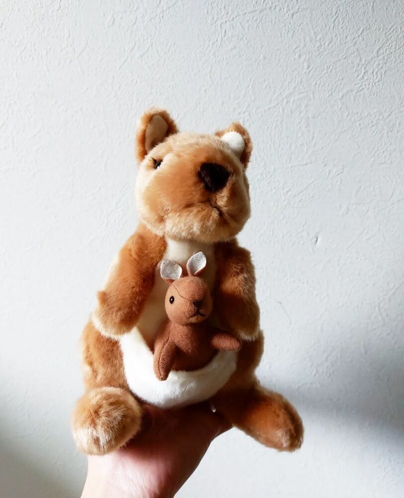 カンガルーの親子にぬいぐるみです。ポケットに入った赤ちゃんがかわいいです♡