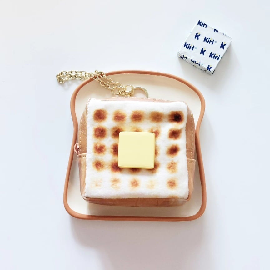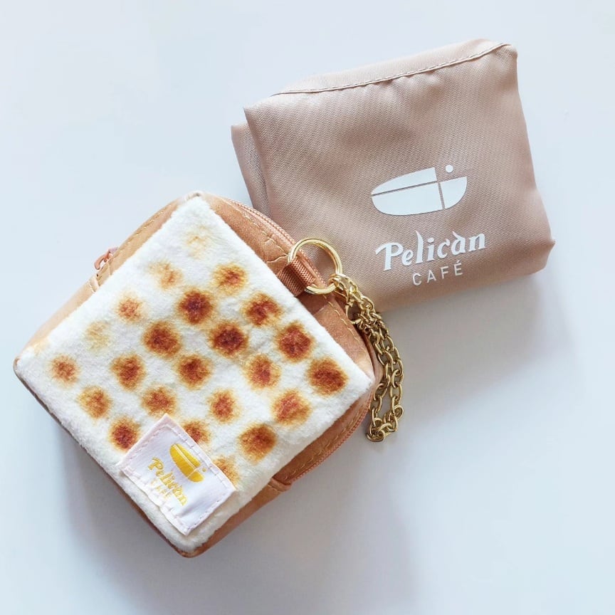 東京浅草の老舗店『パンのペリカン』とのコラボ商品。今回は、『ペリカンカフェ』の看板メニュー「炭焼きトースト」をエコバッグ入りポーチにしました。見た目はまるで本物のトーストのよう!お店のロゴ入りエコバッグはちょっとしたお買い物に便利。ポーチに付属のチェーンでバッグに付けることができます。