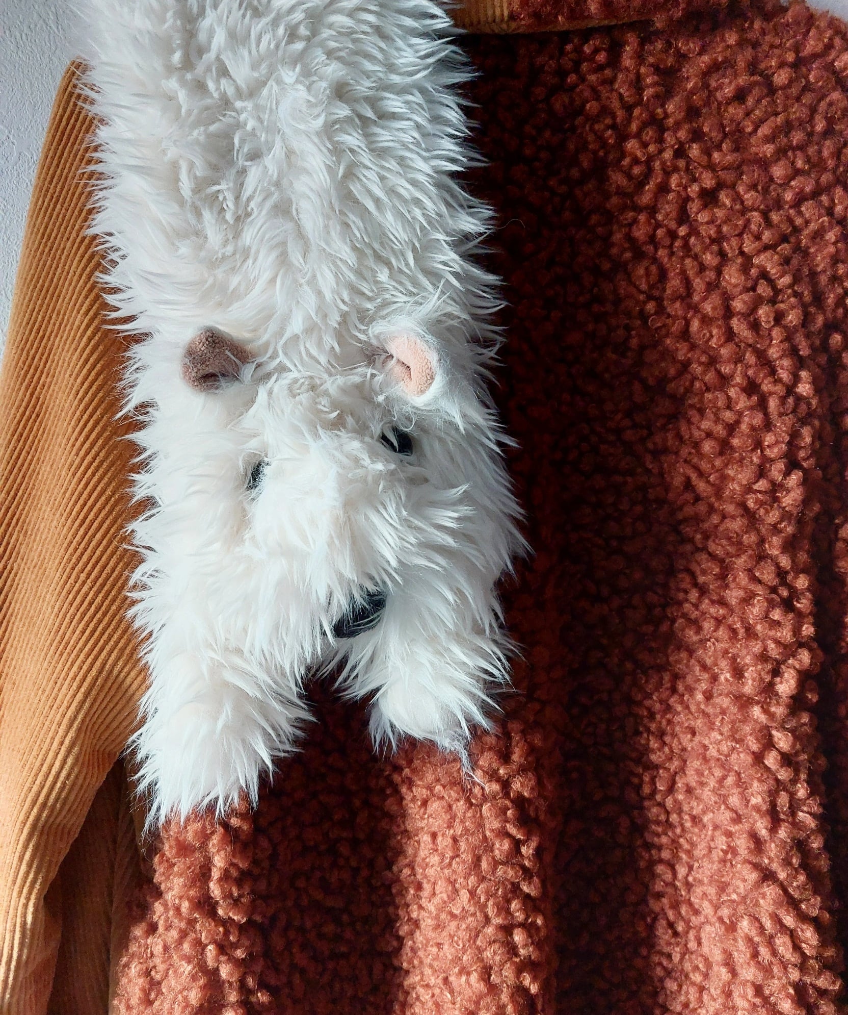 ふーわふわのワンちゃんモチーフのマフラーです。